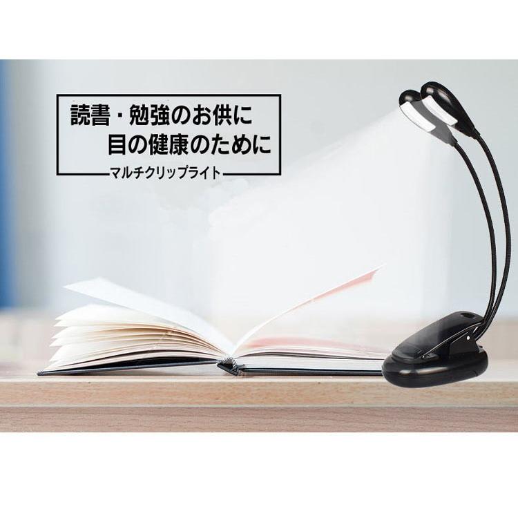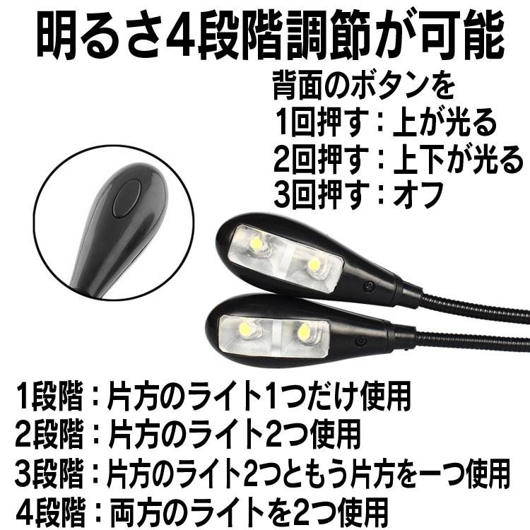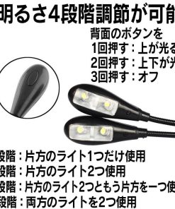 クリップ型フレキシブルスタンドライト 2本 4灯LED ブックライト 譜面台ライト 持ち運びも便利 方向調節自由 乾電池 USB給電 LP-BOOKL22
