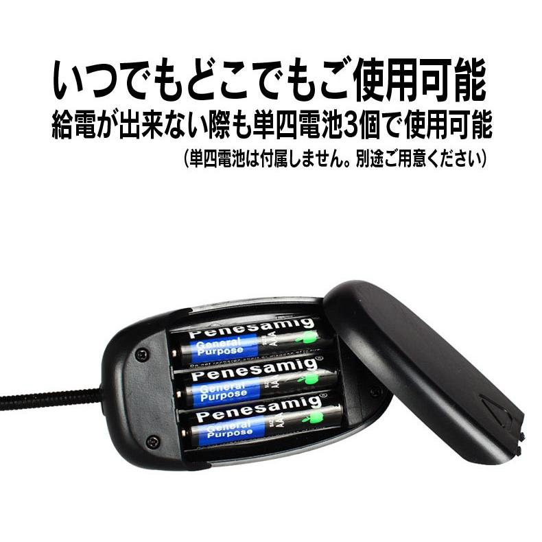 電源:単四乾電池3個 & USB接続給電 (乾電池付属しません)